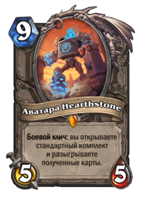 Празднование 10-летнего юбилея Hearthstone продолжается! В честь годовщины в игру добавлена еще одна бесплатная легендарная карта! Сыграйте один матч в обновлении 30.6, чтобы автоматически получить Аватару Hearthstone.* Она откроет для вас комплект, который тут же принесет пользу в матче. Что вы рассчитываете получить из него?