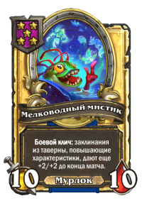 - После: 4 атаки, 4 здоровья. Пока эта карта у вас в руке, получает +4/+4, после того как вы разыгрываете мурлока.