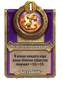 - После: [1 золотой] В конце каждого хода ваши золотые существа получают +10/+10.