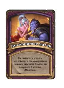 - После: Боевой клич: существа в таверне получают +2/+1 до конца матча.