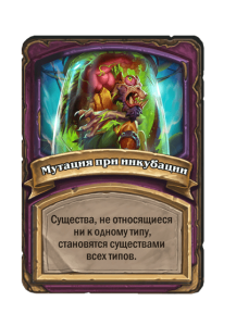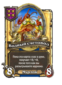 - До изменения: 4 атаки, 3 здоровья. Пока эта карта у вас в руке, получает +4/+3, после того как вы разыгрываете мурлока.