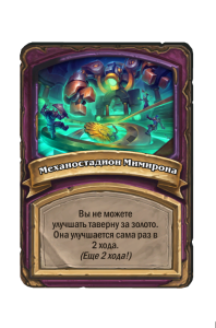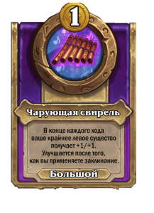 - После: Заклинания из таверны, повышающие характеристики, дают еще +2 к здоровью. В начале каждого хода усиливается на 1.