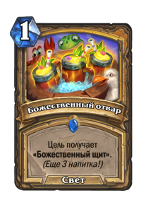 Если у цели уже есть «Божественный щит», она получает +1 к атаке до конца хода.(Еще 3 порции!)