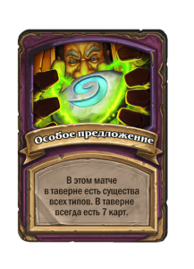 - После: 5 атаки, 7 здоровья. Когда вы применяете заклинание из таверны, одно ваше существо каждого типа получает +3/+2.