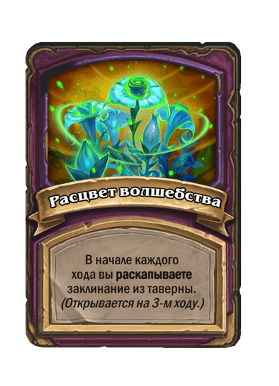 - До изменения: Заклинания из таверны, повышающие характеристики, дают еще +1 к здоровью. В начале каждого хода усиливается на 1.