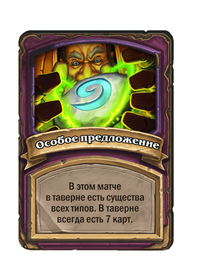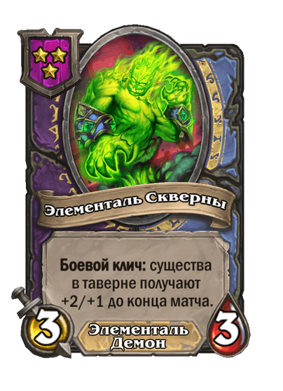 - После: 5 атаки, 7 здоровья. Когда вы применяете заклинание из таверны, одно ваше существо каждого типа получает +3/+2.