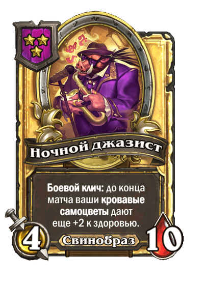 - После: Заклинания из таверны, повышающие характеристики, дают еще +2 к здоровью. В начале каждого хода усиливается на 1.