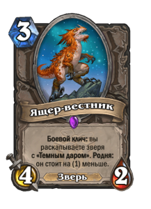 - После: Боевой клич: вы раскапываете зверя с «Темным даром». Родня: он стоит на (1) меньше.
