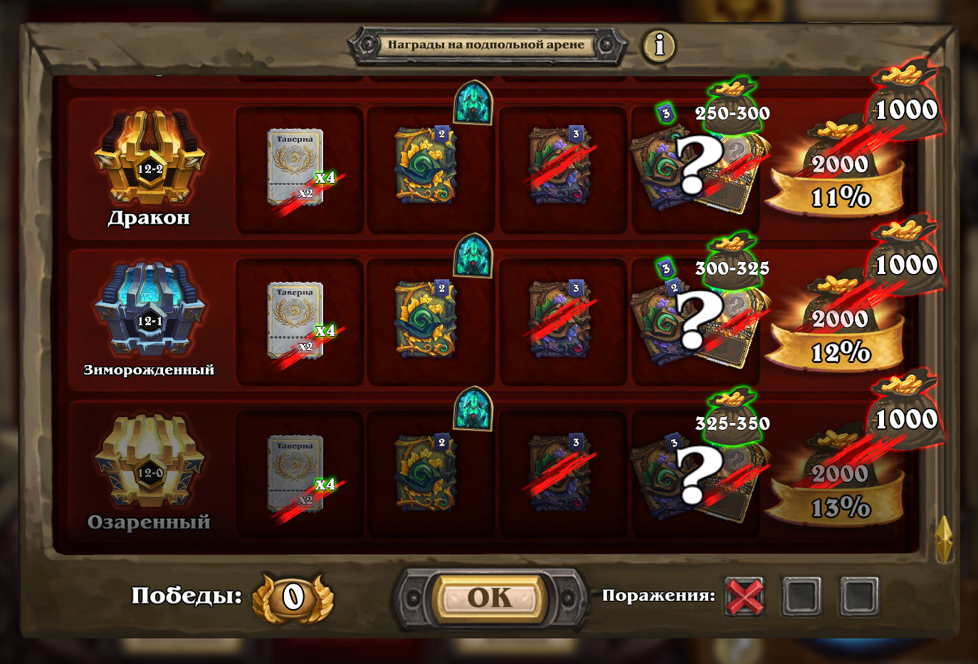 | 12-0 | • 4 пропуска в таверну • 1 случайная награда • 1 уникальная награда — Облик героя |