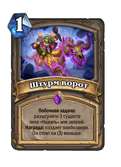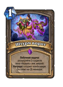 Штурм у ворот — побочная задача, которая позволит создать своего собственного зомбозверя после выполнения. В отличие от легендарных задач побочные — это обычные заклинания, которые нужно достать из колоды. Их легко выполнить для быстрой награды.