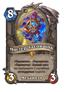 Заходите в Hearthstone прямо сейчас, чтобы бесплатно получить новую легендарную карту «Мистер Часовщик»! С тройной перемоткой Часовщик сможет переписывать историю снова и снова (и снова).*