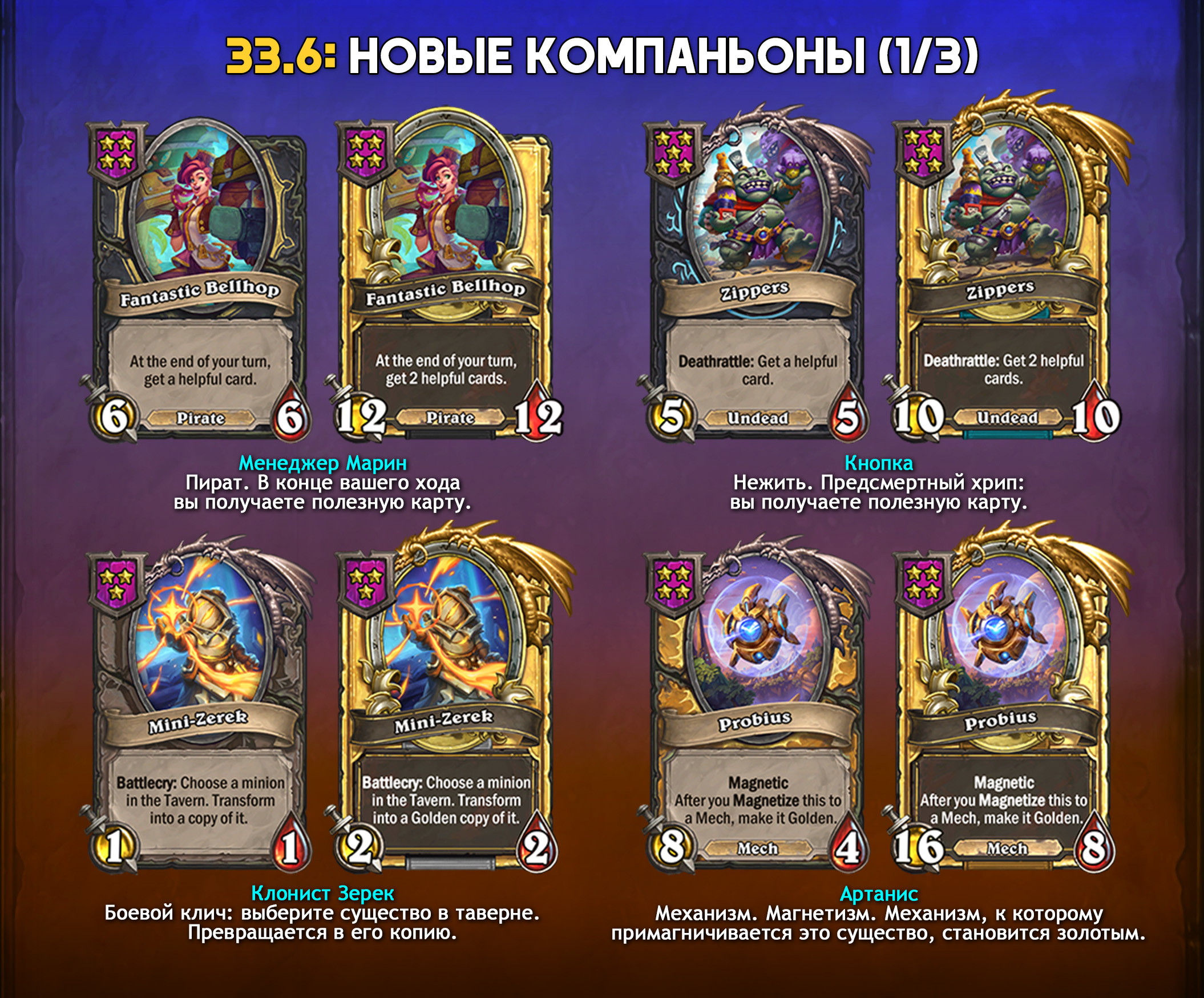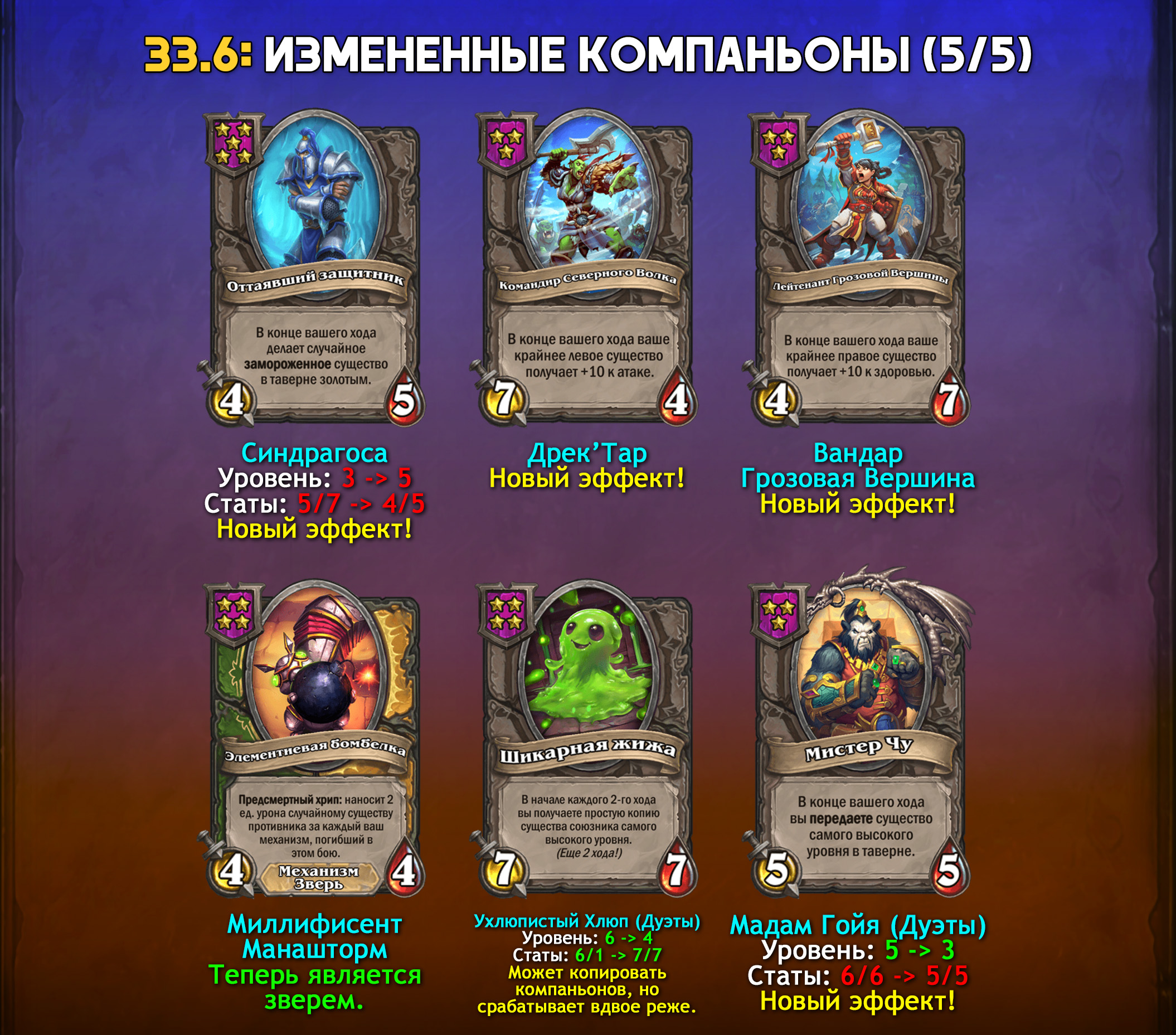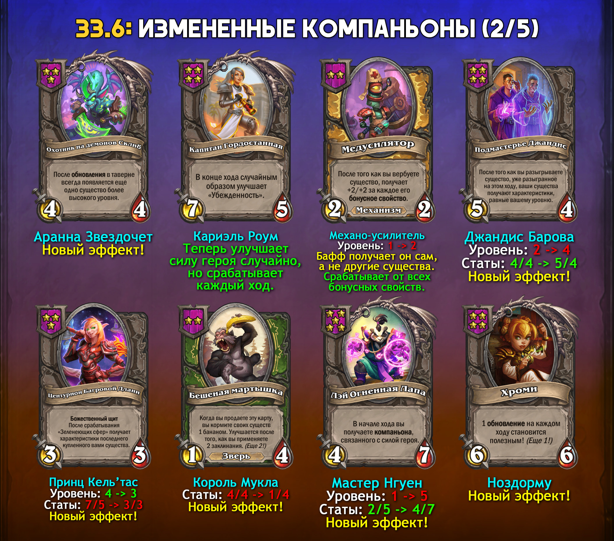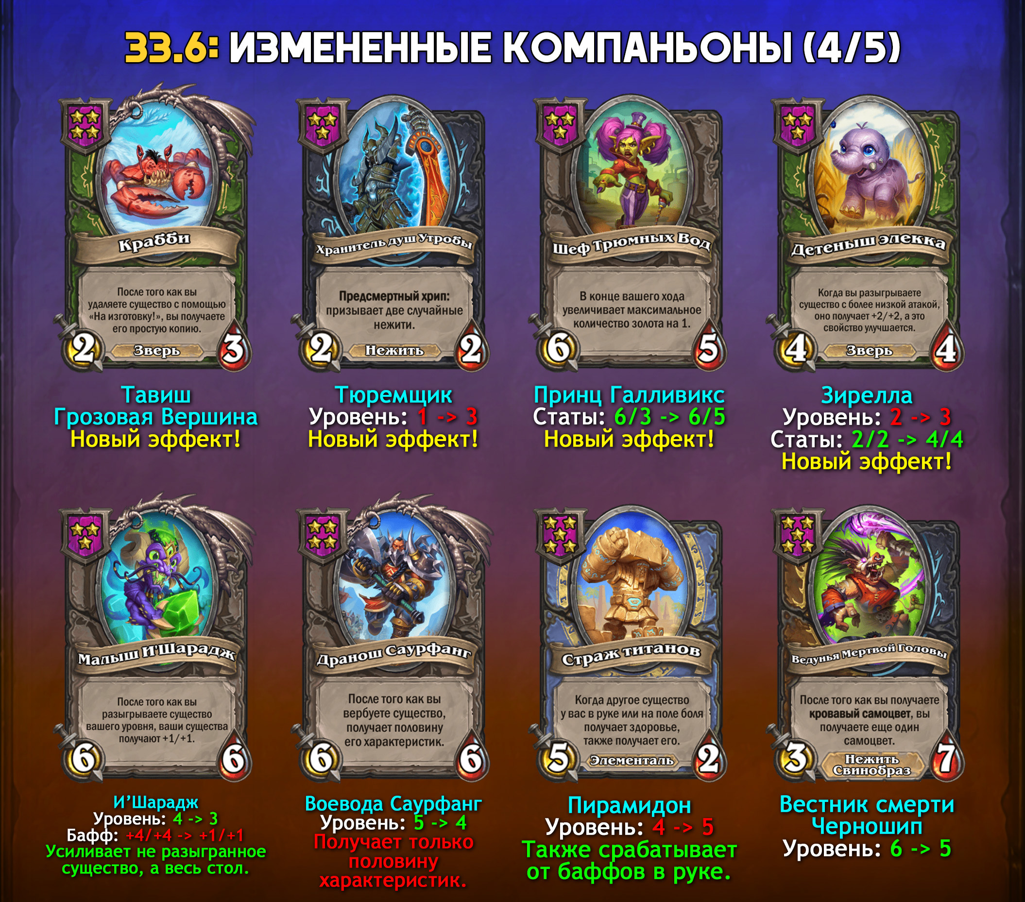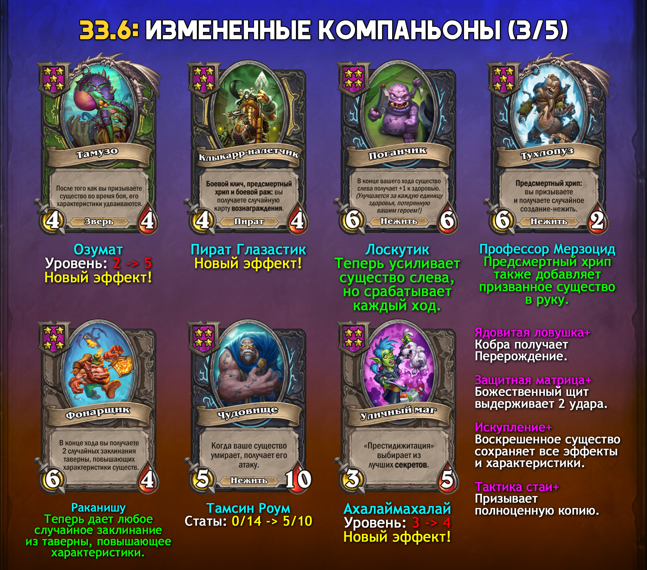 Компаньоны вернулись на Поля сражений! Компаньоны — это сильные существа, уникальные для каждого героя. Также в ближайшем обновлении в игру вернутся аномалии — подробности появятся скоро. С выходом обновления 33.6 задачи покидают таверну.