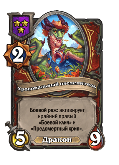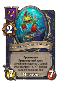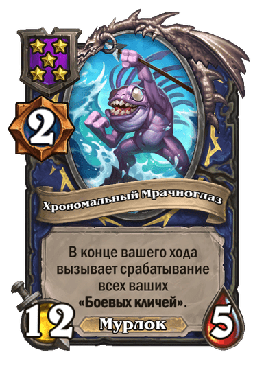 - Хрономальный Мурчаль: Теперь улучшается при срабатывании боевых кличей из всех источников (Бранн Бронзобород, Рилак-металлист и др.), а не только при разыгрывании существа с боевым кличем.