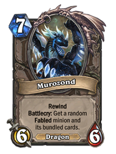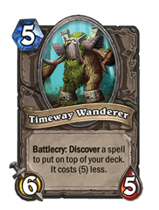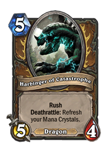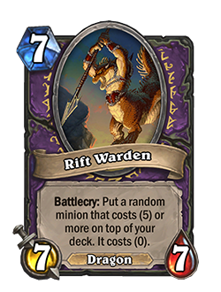Боевой клич: вы кладете случайное существо за (5) или больше на верх вашей колоды. Оно стоит (0).