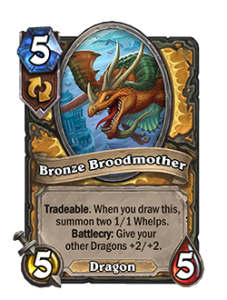 Можно обменять. Когда вы берете эту карту, вы призываете двух дракончиков 1/1. Боевой клич: другие ваши драконы получают +2/+2.