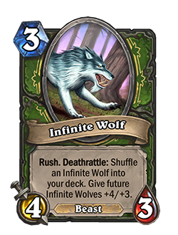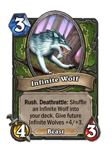 Натиск. Предсмертный хрип: замешивает волка бесконечности в вашу колоду. Все последующие волки бесконечности получают +4/+3.