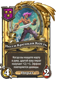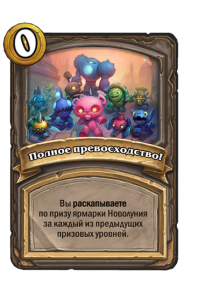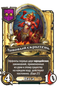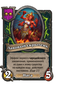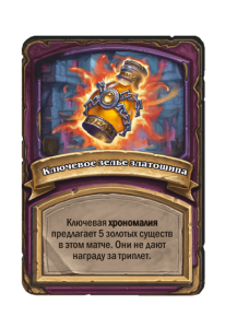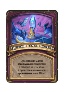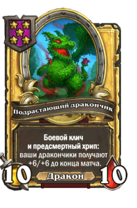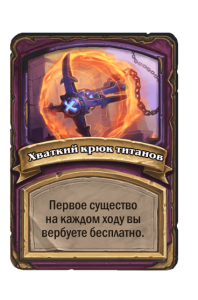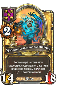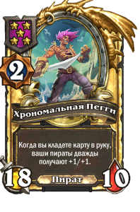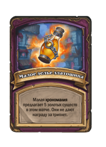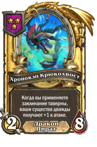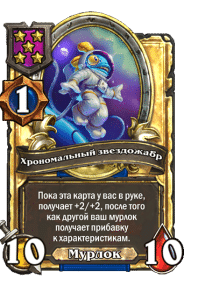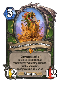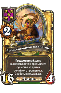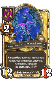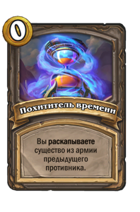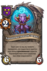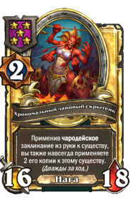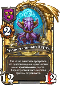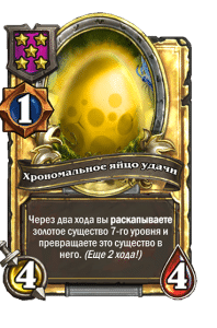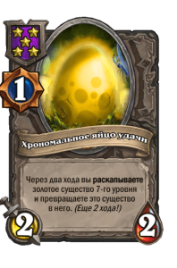 - [1 хронума] 2 атаки, 2 здоровья. Через два хода вы раскапываете золотое существо 7-го уровня и превращаете это существо в него.
