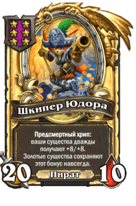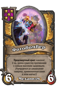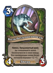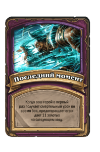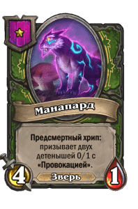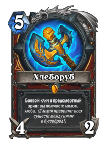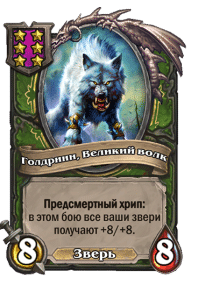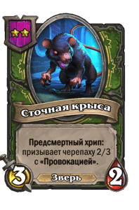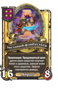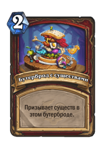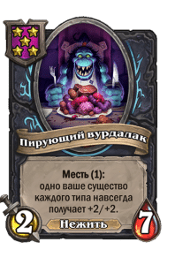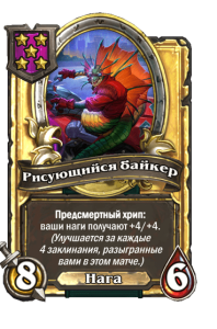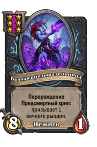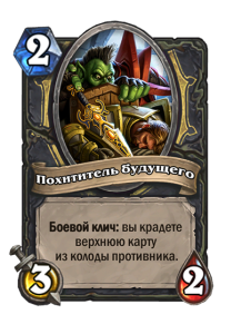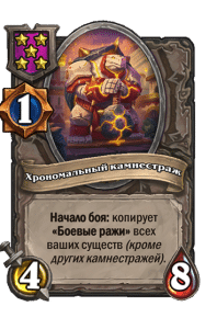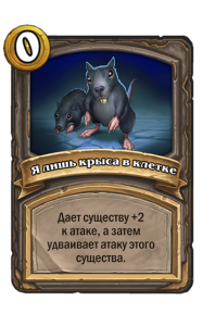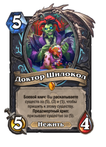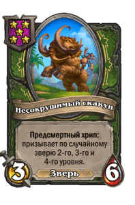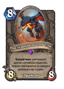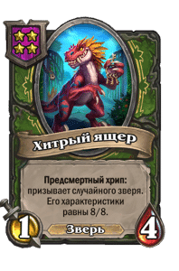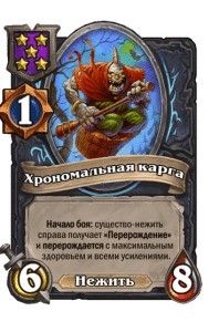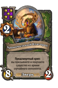 - [2 хронума] 8 атаки, 2 здоровья. Предсмертный хрип: вы призываете и получаете существо из армии случайного оппонента.