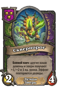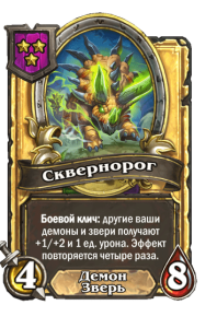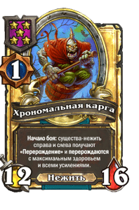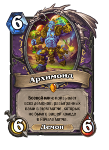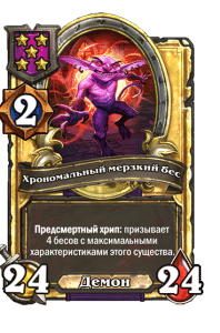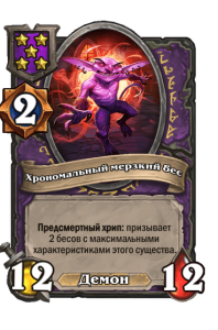 - [2 хронума] 12 атаки, 12 здоровья. Предсмертный хрип: призывает 2 бесов с максимальными характеристиками этого существа.