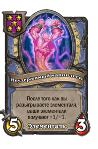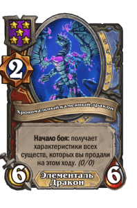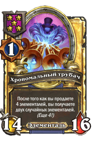 - [1 хронума] 7 атаки, 8 здоровья. После того как вы продаете 4 элементалей, вы получаете случайного элементаля.