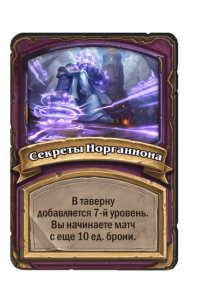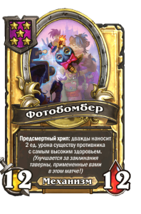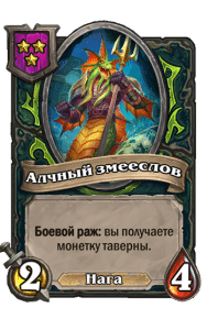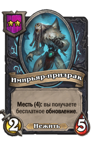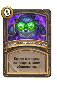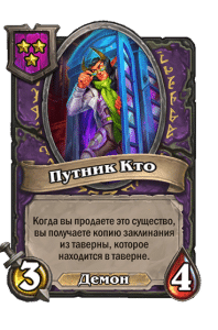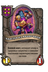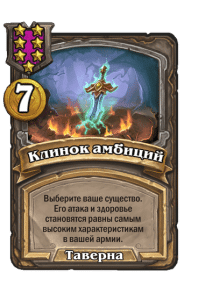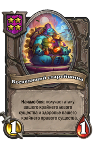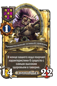 - [1 хронума] 7 атаки, 11 здоровья. В конце вашего хода получает характеристики 3 существ с самым высоким здоровьем в таверне.