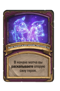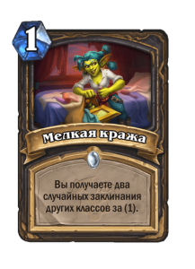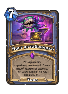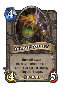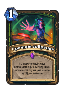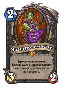 - После: Замешивает в вашу колоду по карте каждого другого класса. Они стоят (1). Вы берете одну из них.