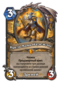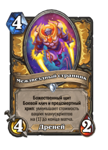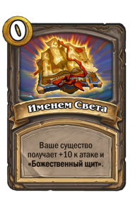 - После: Божественный щит. Боевой клич и предсмертный хрип: уменьшает стоимость ваших манускриптов на (1) до конца матча.