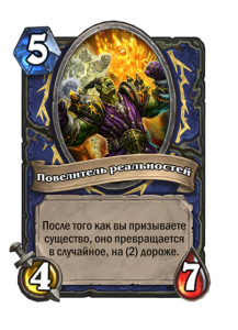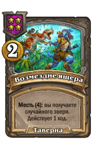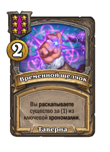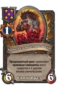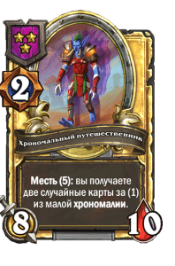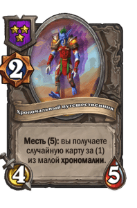 - [2 хронума] 4 атаки, 5 здоровья. Месть (5): вы получаете случайную карту за (1) из малой хрономалии.