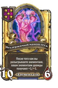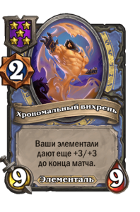 - [2 хронума] 9 атаки, 9 здоровья. Ваши элементали дают еще +3/+3 до конца матча.
