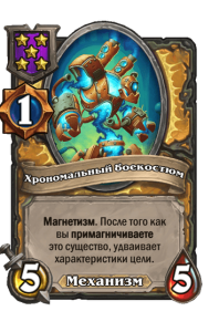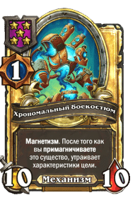 - [1 хронума] 5 атаки, 5 здоровья. Магнетизм. После того как вы примагничиваете это существо, удваивает характеристики цели.