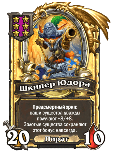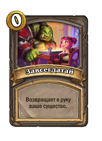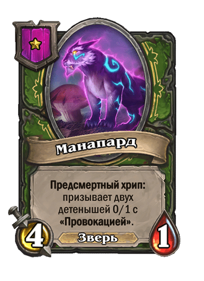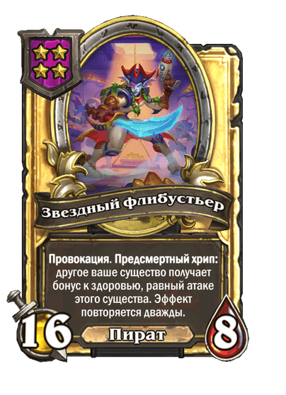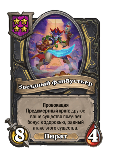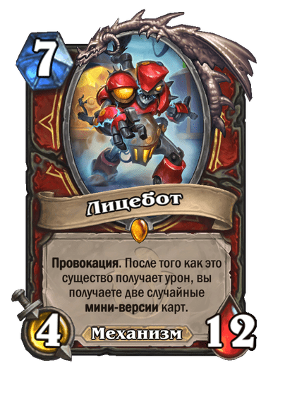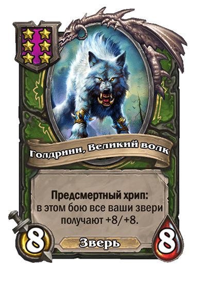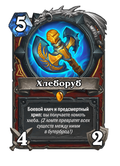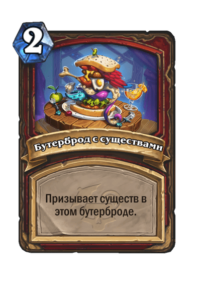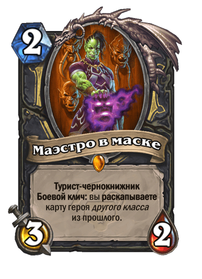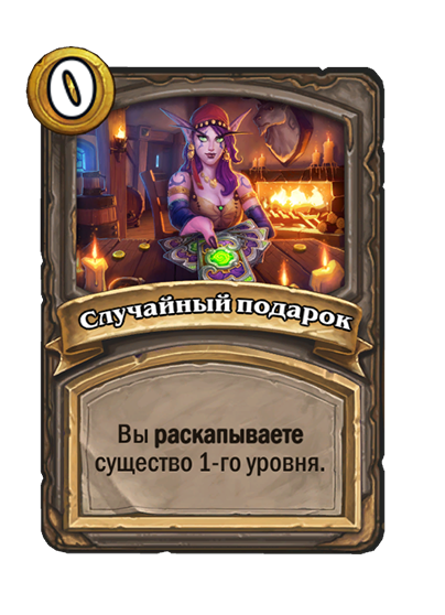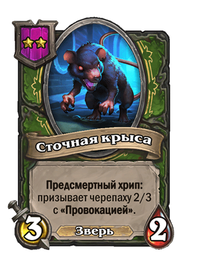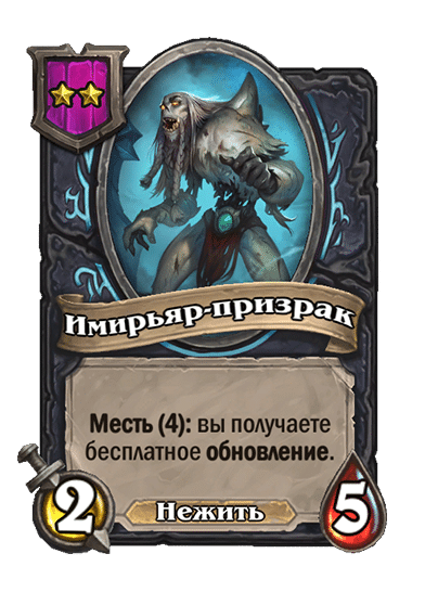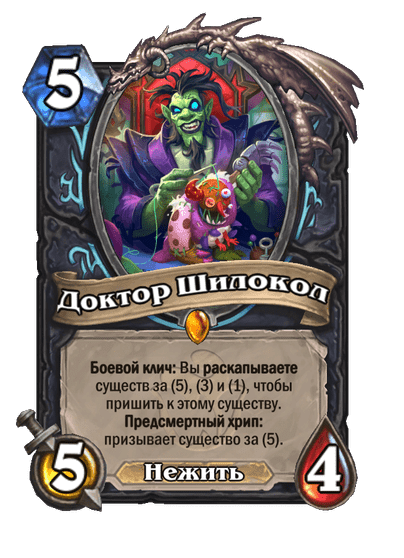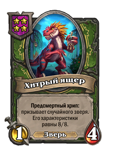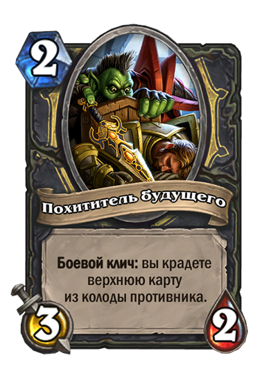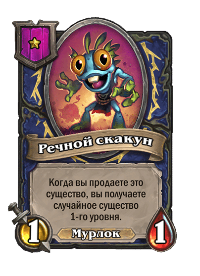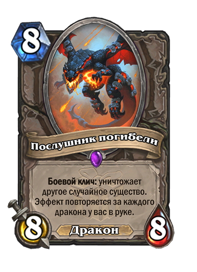 - [2 хронума] 8 атаки, 2 здоровья. Предсмертный хрип: вы призываете и получаете существо из армии случайного оппонента.