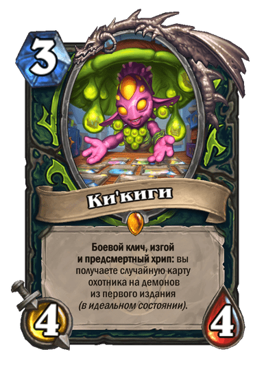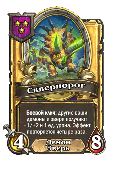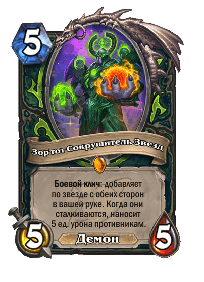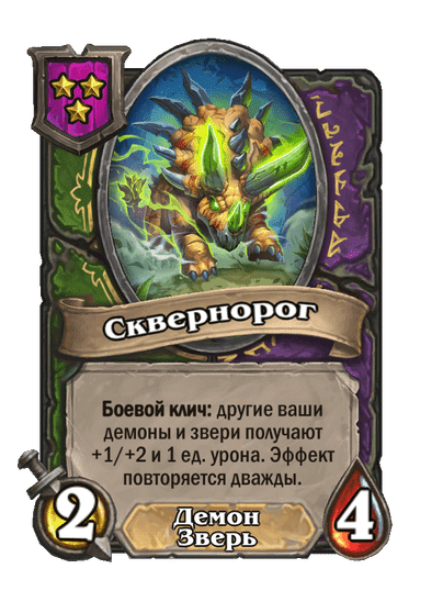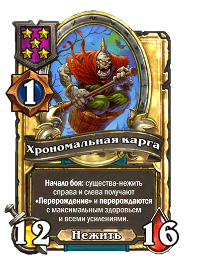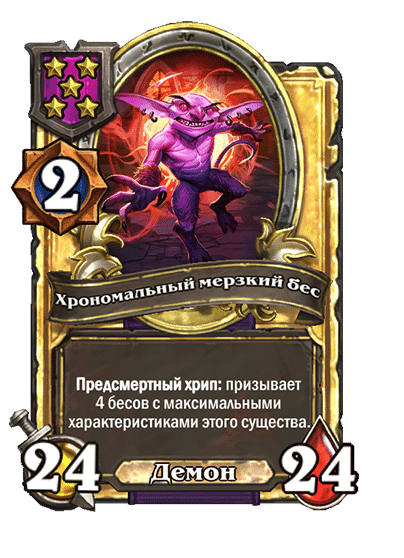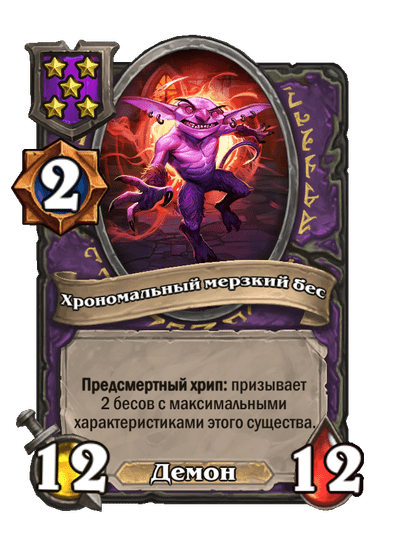 - [2 хронума] 12 атаки, 12 здоровья. Предсмертный хрип: призывает 2 бесов с максимальными характеристиками этого существа.