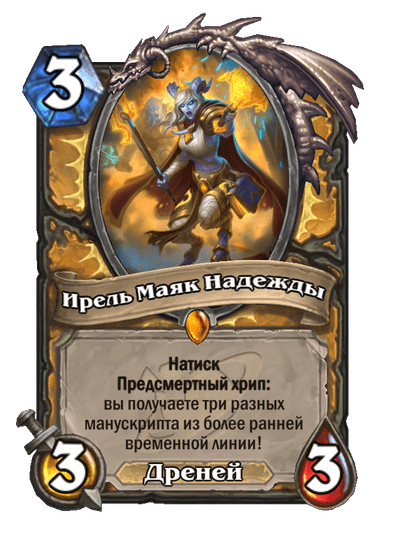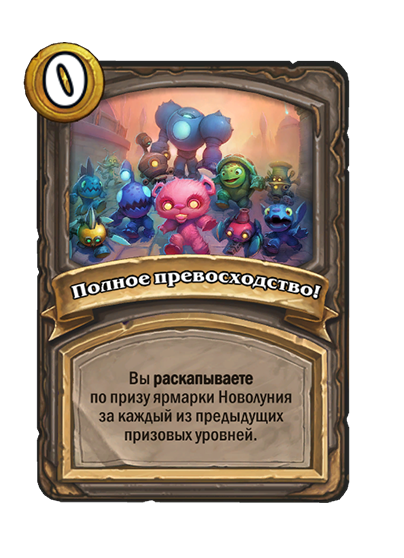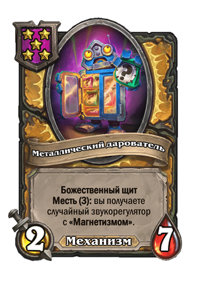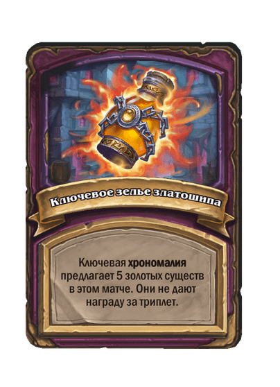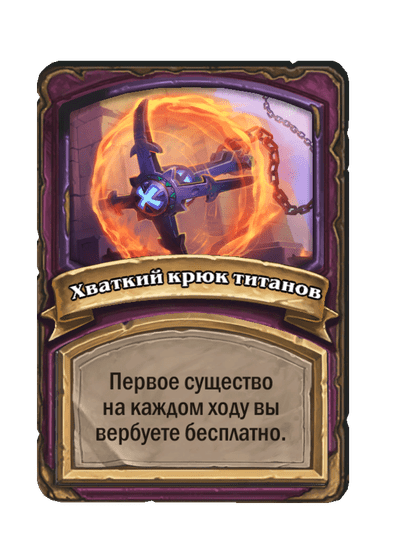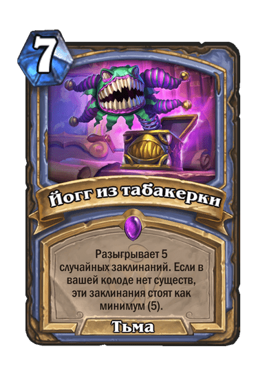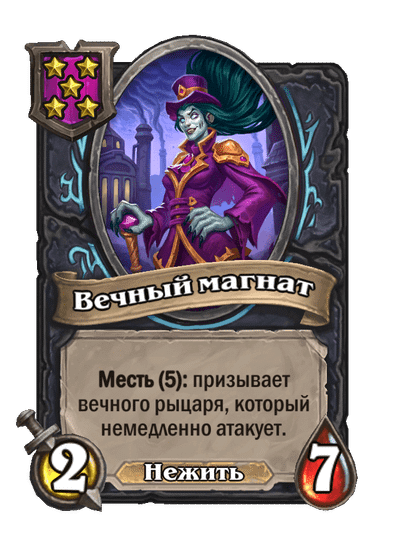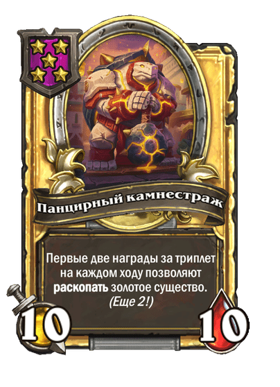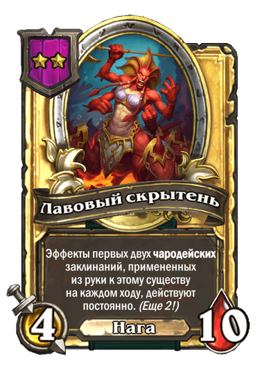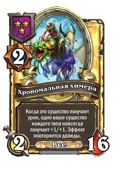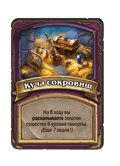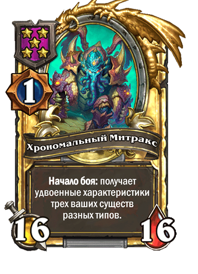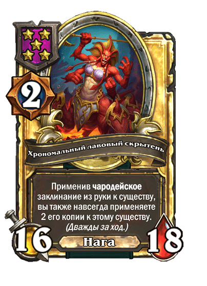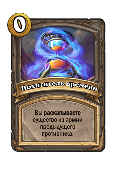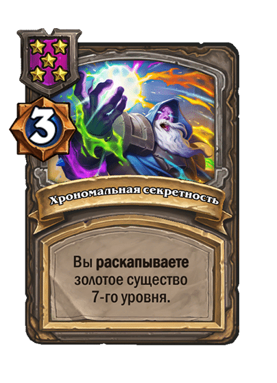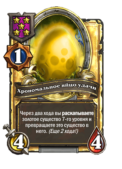 - [1 хронума] 2 атаки, 2 здоровья. Через два хода вы раскапываете золотое существо 7-го уровня и превращаете это существо в него.