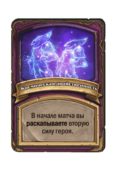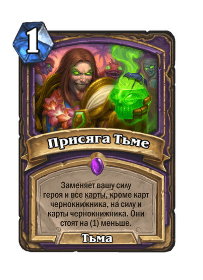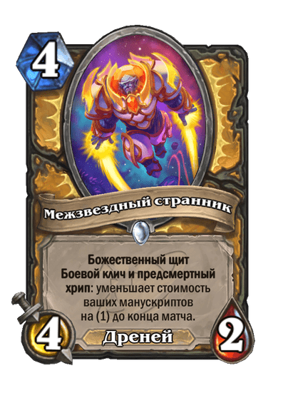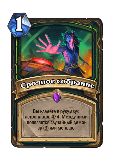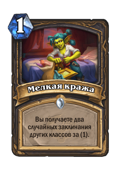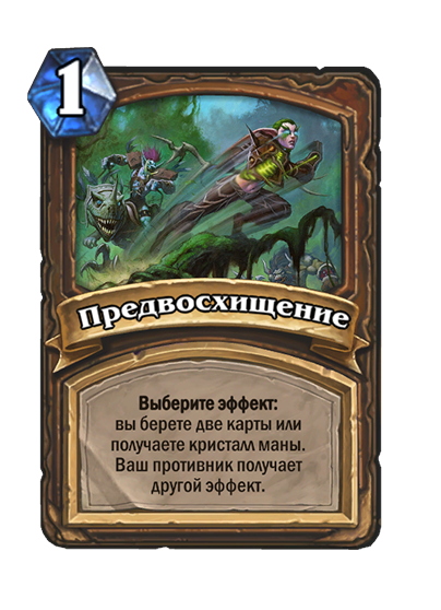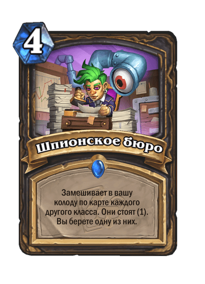 - После: Замешивает в вашу колоду по карте каждого другого класса. Они стоят (1). Вы берете одну из них.