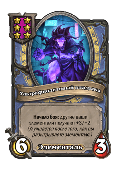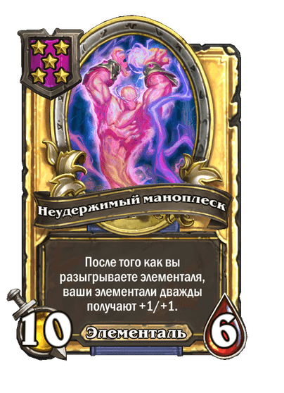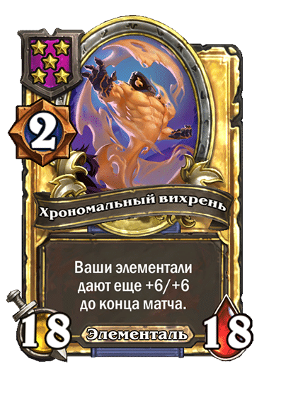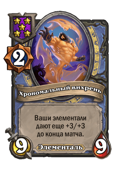 - [2 хронума] 9 атаки, 9 здоровья. Ваши элементали дают еще +3/+3 до конца матча.