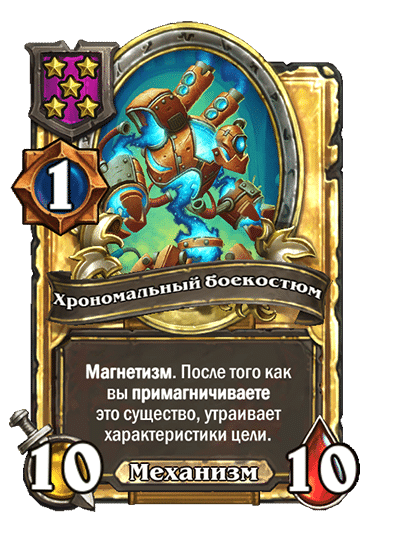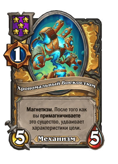 - [1 хронума] 5 атаки, 5 здоровья. Магнетизм. После того как вы примагничиваете это существо, удваивает характеристики цели.