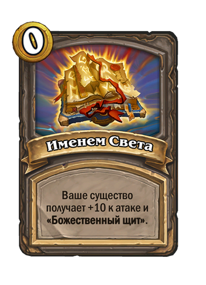 - После: Божественный щит. Боевой клич и предсмертный хрип: уменьшает стоимость ваших манускриптов на (1) до конца матча.