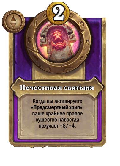 - После: Предсмертный хрип: вы получаете точную копию существа противника, убившего это существо, с полным здоровьем и чарами.