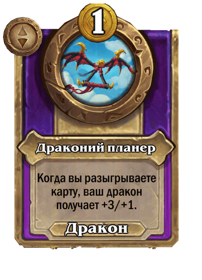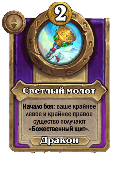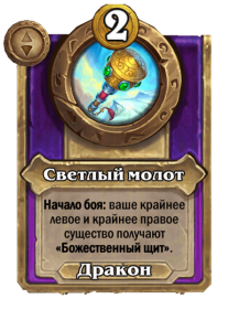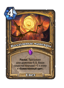 - После: Раскол. Призывает двух драконов 4/2. Ваши существа получают +1 к атаке и «Божественный щит».