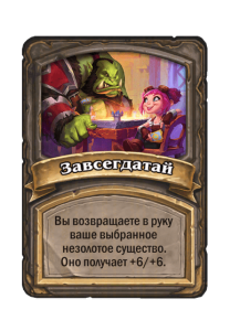 - После: Вы возвращаете в руку ваше выбранное незолотое существо. Оно получает +6/+6.