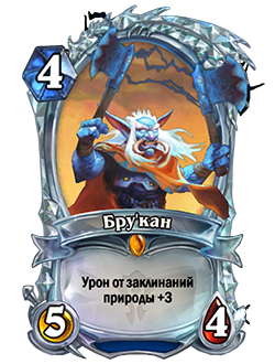 - Бриллиантовый «Бру’кан» — чтобы получить эту карту, надо получить достижение «Легендарная коллекция 5/5» из дополнения «Закаленные Степями» (соберите все легендарные карты из набора).
