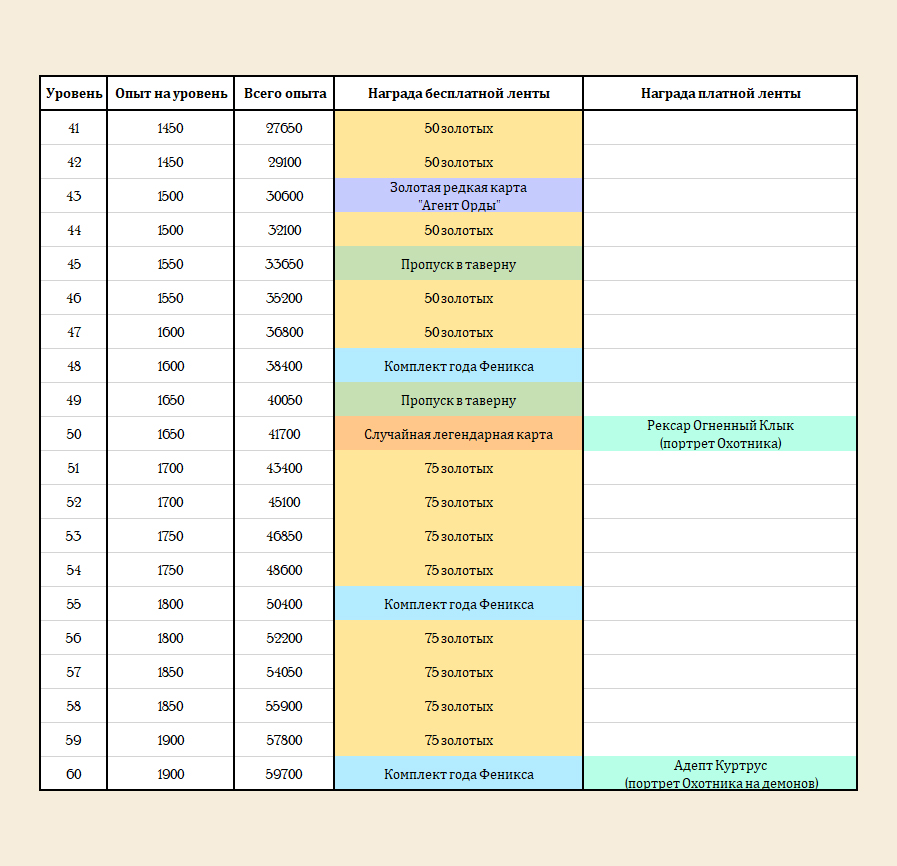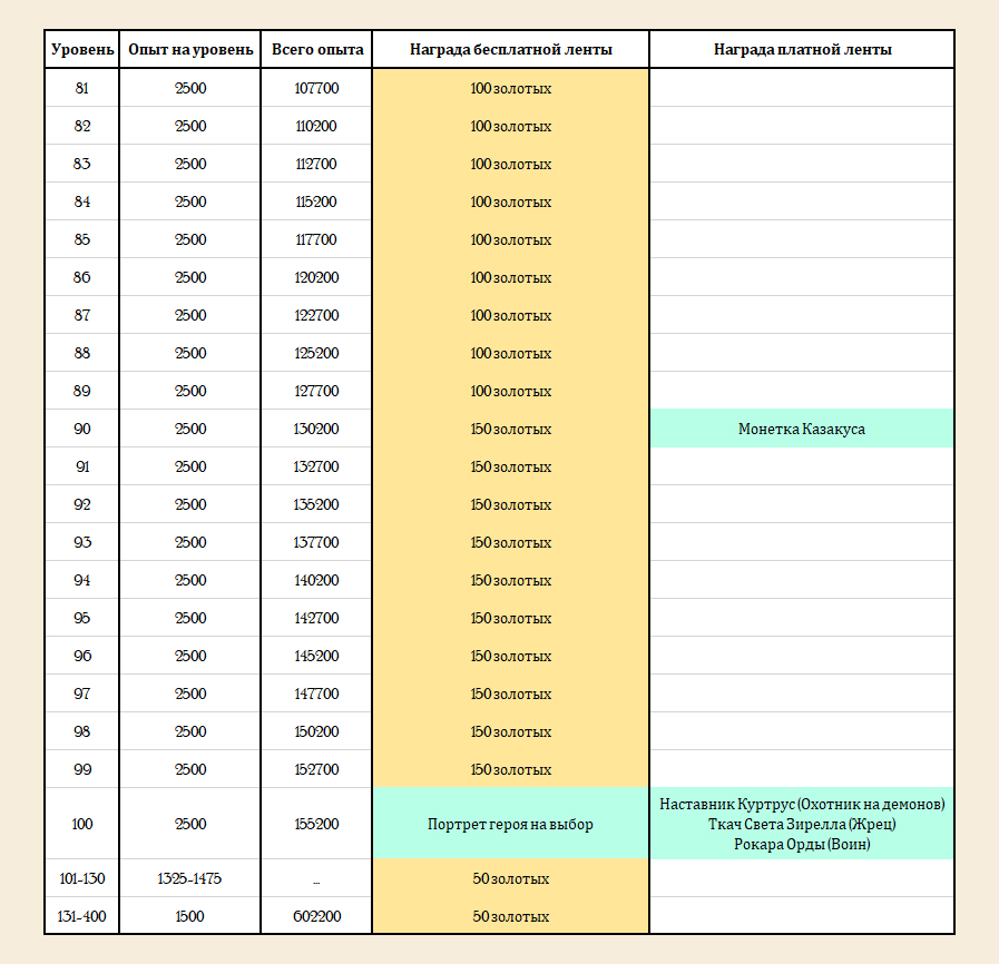Ниже приведена полная таблица наград и указано количество опыта, необходимого для достижения каждого уровня на бесплатной ленте наград дополнения «Закаленные Степями» и на ленте пропуска завсегдатая. Также мы добавили таблицу для сравнения, с помощью которой вы сможете подробно рассмотреть все изменения по сравнению с предыдущим дополнением.