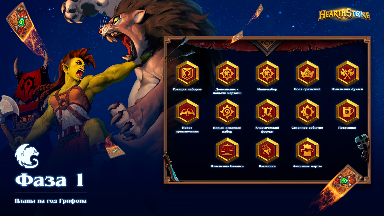 Анонсируя пропуск завсегдатая для дополнения «Закаленные Степями», мы с радостью готовы продемонстрировать одну из особенностей 1-го этапа года Грифона, ранее сокрытую под завесой тайны. Представляем новый декоративный уровень карт в Hearthstone — бриллиантовые карты! Каждое дополнение будет содержать как минимум одну созданную вручную бриллиантовую карту с новой трехмерной анимацией, расширенной областью для рисунка и стильной бриллиантовой рамкой.