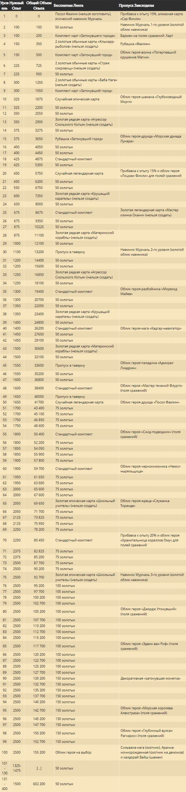 На бесплатной ленте наград «Путешествия в Затонувший город» будут представлены комплекты карт «Путешествия в Затонувший город», стандартные комплекты, пропуски в таверну, случайная эпическая карта, две случайные легендарные карты, карта эпического наемника Мурчаля, рубашка «Затонувший город» и уйма золота! Кроме того, вы сможете получить 14 золотых карт* и посла Фаэлина — легендарное существо из нового дополнения. За полное прохождение ленты вы сможете выбрать один из 10 ранее выпущенных обликов героев.