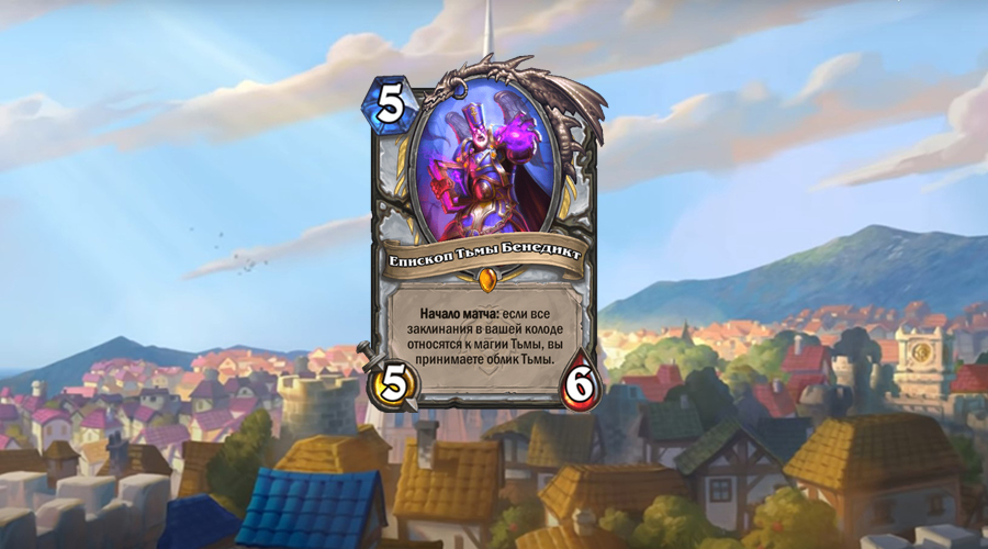 Епископ Тьмы Бенедикт — карта с интересными механикой и условиями. Заклинания школы тьмы не такие уж и слабые, хотя и среди других школ есть сильные опции вроде Обновления, Божественной кары или Драконоведения — их Жрец с Бенедиктом играть не сможет.