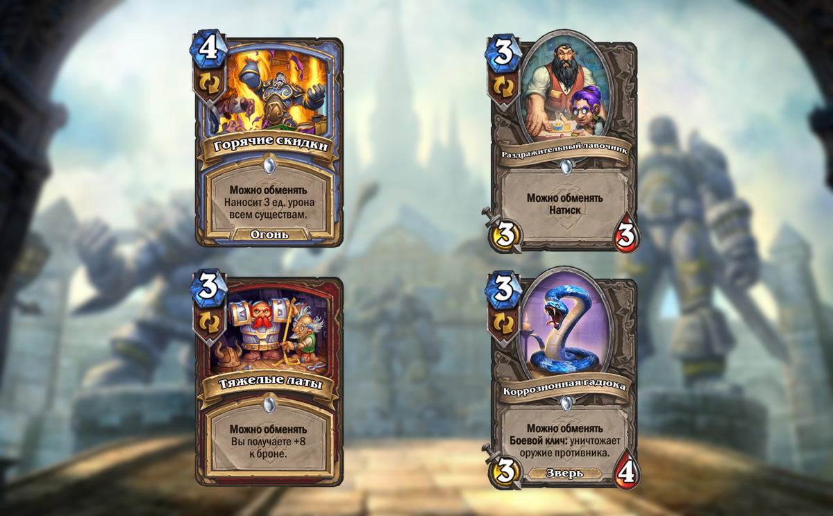Что до самих карт, они выглядят обычно и просто. У них простые и честные эффекты. Вряд ли бы эти карты заиграли просто так без свойства можно обменять. Например, Коррозионная гадюка была бы просто ухудшенной версией Кислотного слизнюка. И только свойство можно обменять дает ей шансы на попадание в колоды.