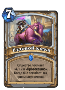 Новые заклинания напоминают старую карту Паладина из Экспедиции в Ун’Горо — Гребнистого скакуна. Ездовой элекк фактически делает то же самое, но стоит на 1 маны дороже и дает больше характеристик.