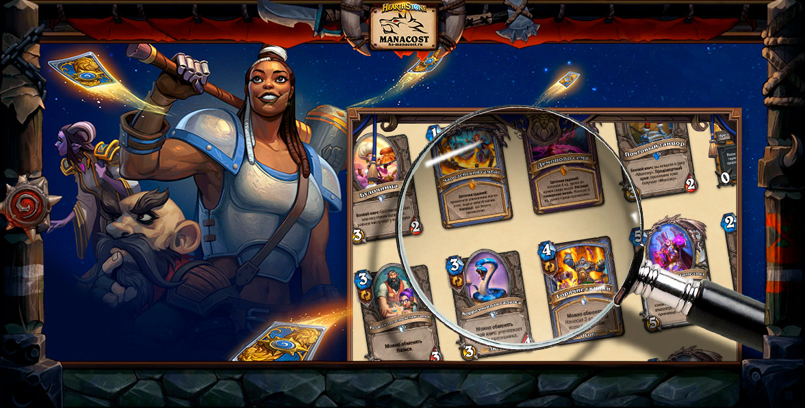 Медленные Чернокнижники вполне могут рассмотреть Рунический мифриловый жезл. Карта достаточно медленная, но без ремувалов оружия от оппонента Чернокнижник всегда сможет реализовать ее в течение нескольких ходов. Как часто и бывает, карта намного лучше покажет себя в медленных поединках. А если агро колод будет слишком много, оружие будет не таким эффективным.