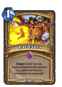Стоит отметить, что Секрет Паладин всегда был агрессивным архетипом. Следовательно, он хотел бы, чтобы Главный канонир Смайт появился на столе как можно раньше. Тогда встает вопрос: а какие секреты смогут остаться на поле боя до его выхода? Даже если вы сможете разыграть до 5 хода несколько секретов, то большинство противников сможет моментально вскрыть их. Пожалуй, сложнее всего будет разобраться с Расплатой.