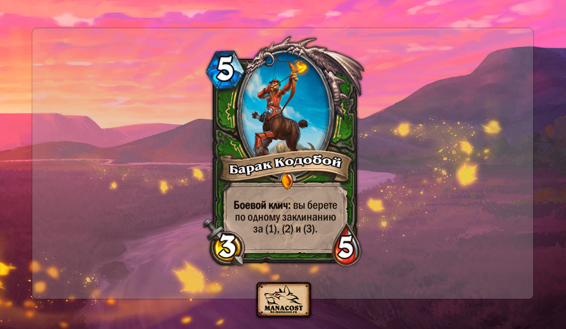 Барак Кодобой вполне может стать неотъемлемой частью подобных сборок Ханта, а если и нет, то просто остаться техническим решением на случай засилья медленных противников, против которых ему будет недоставать ресурсов. Даже без Питомца и Команды «Взять!» Барак Кодобой вполне хорош. Главное, не берите в сборку новое Приручение зверя — карта очень плоха в концепте Охотника в целом.